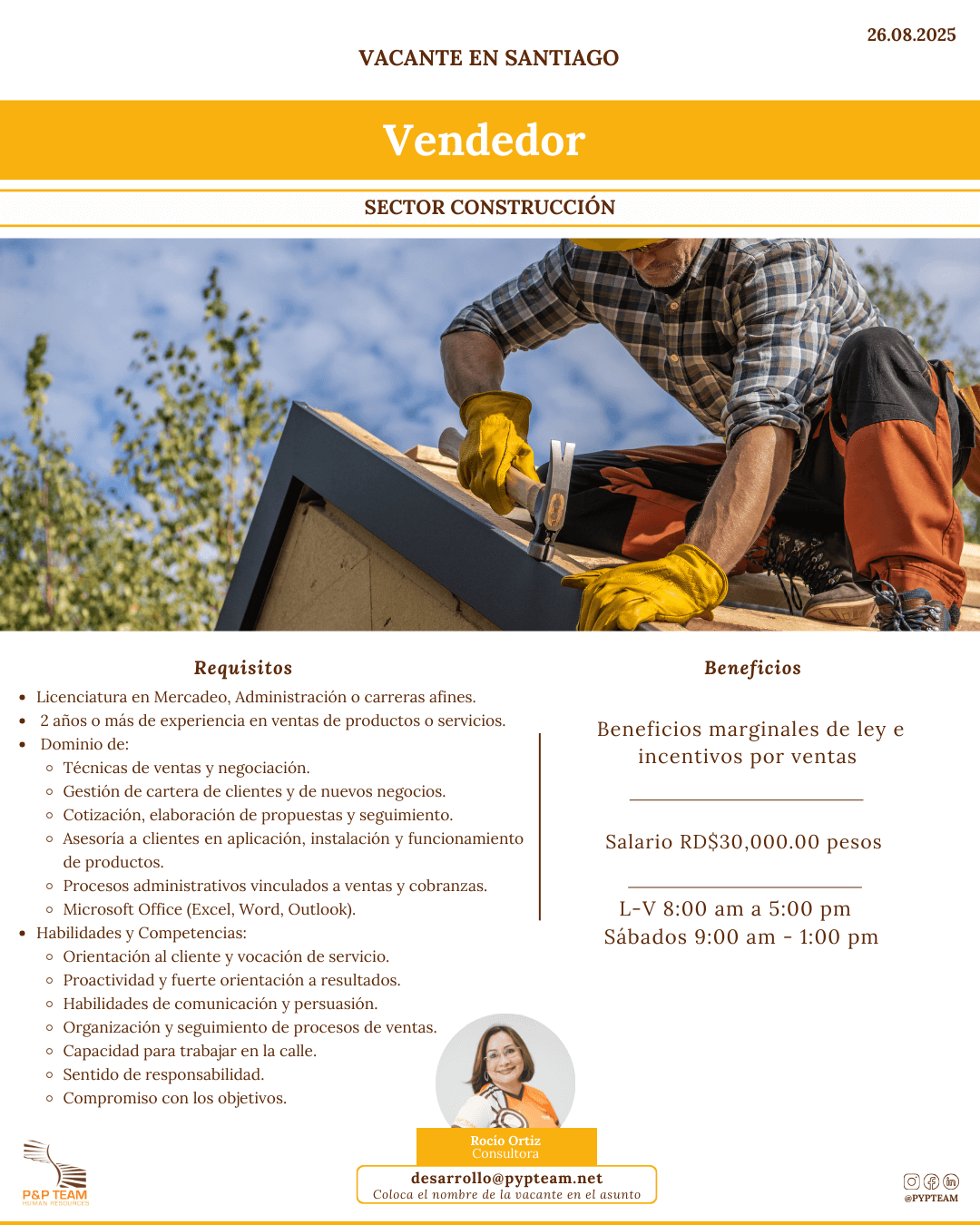 Experiencia: Mínimo 2 años en ventas de proyectos, materiales de construcción o áreas afines.