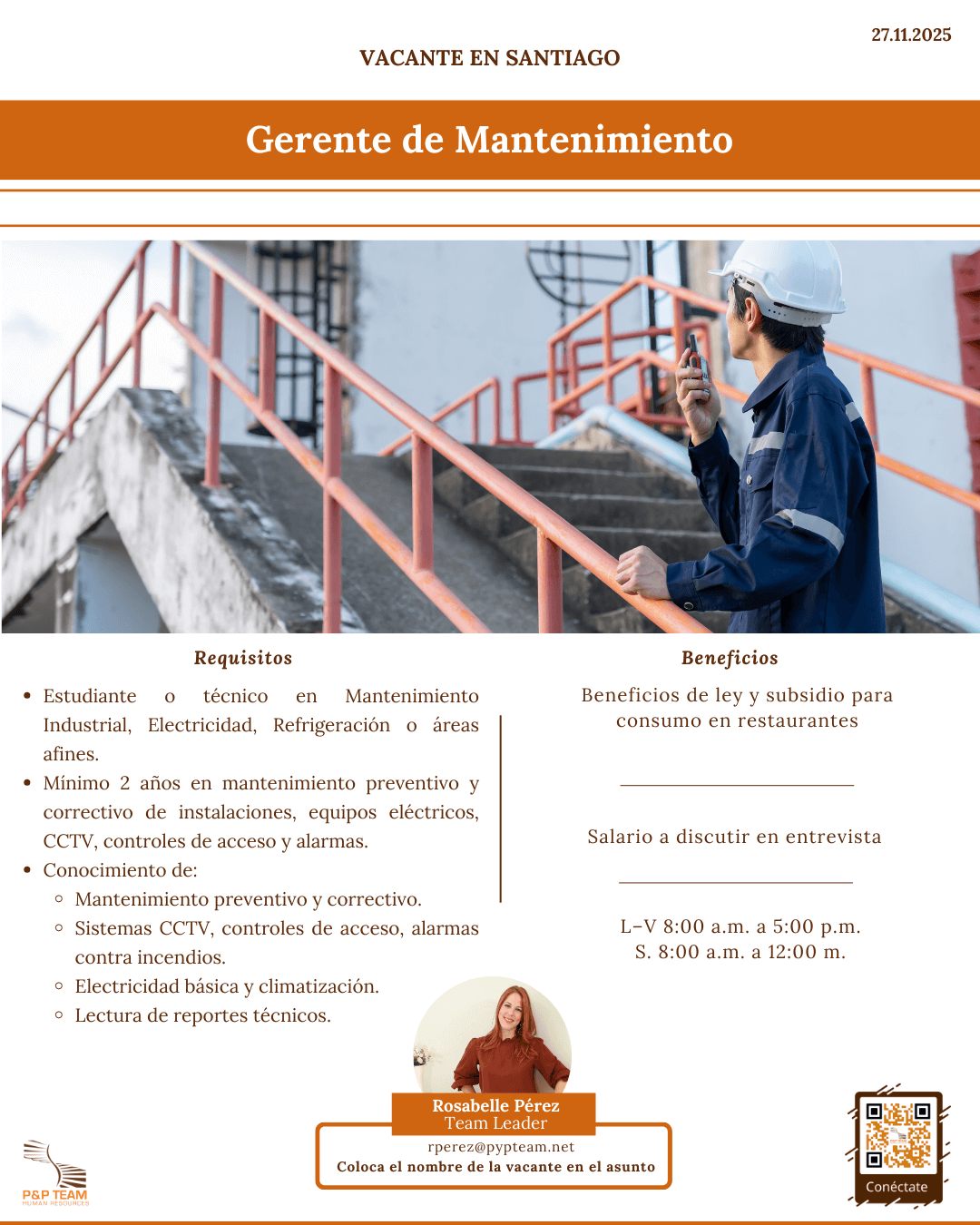 -Técnico en Mantenimiento Industrial, Electricidad, Refrigeración o áreas afines.