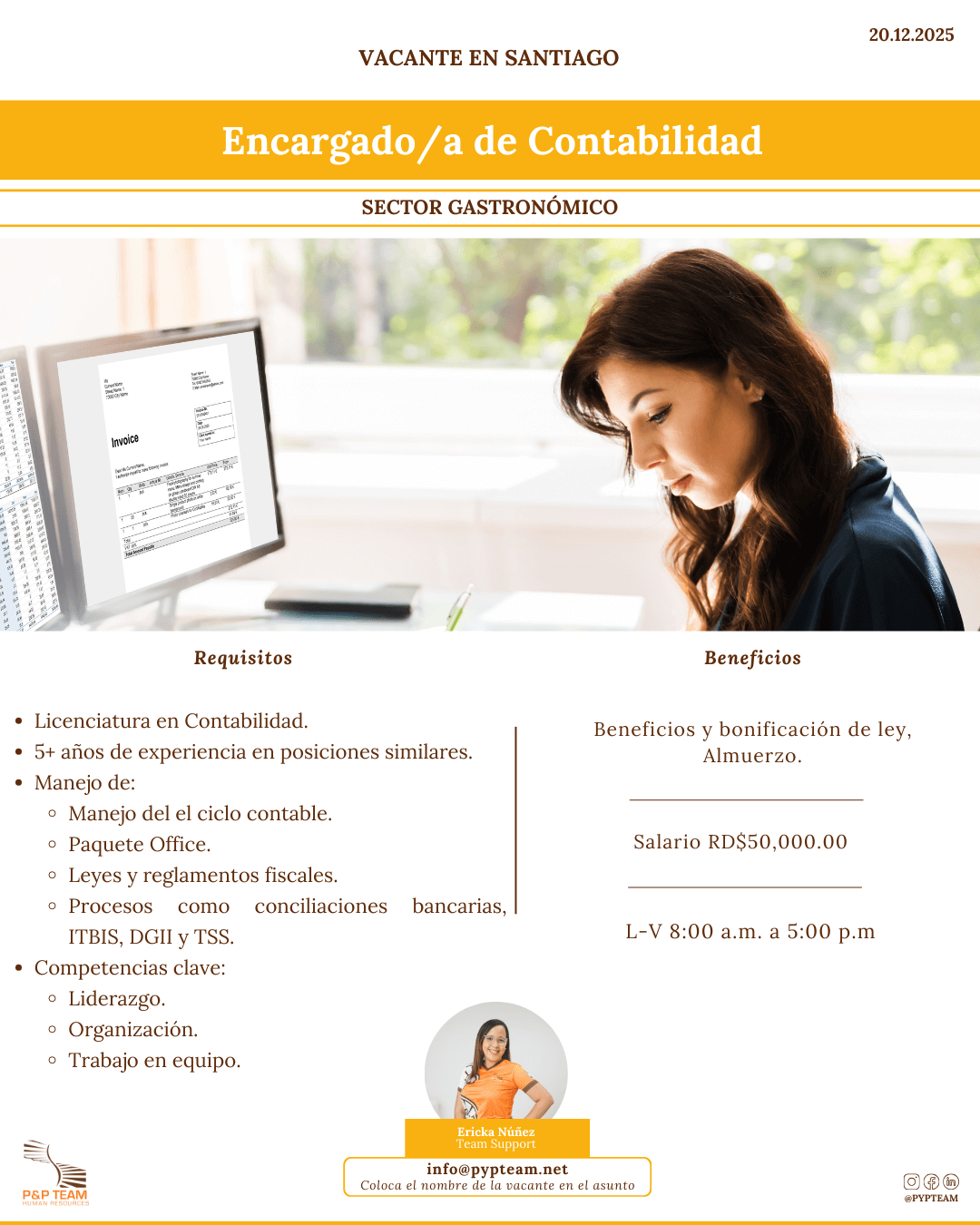 - Procesos como conciliaciones bancarias, ITBIS, DGII y TSS.