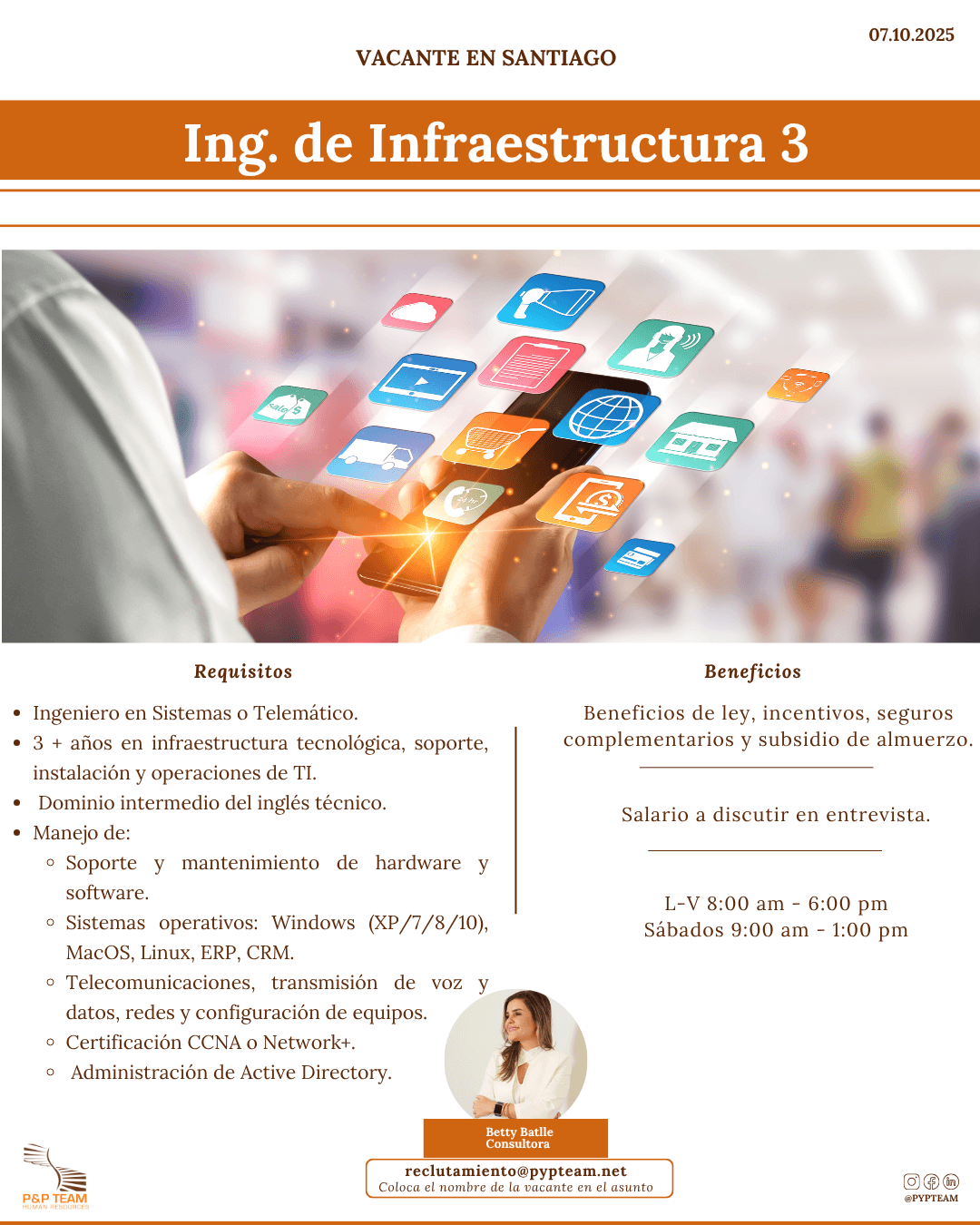 Mínimo 3 años en infraestructura tecnológica, soporte,