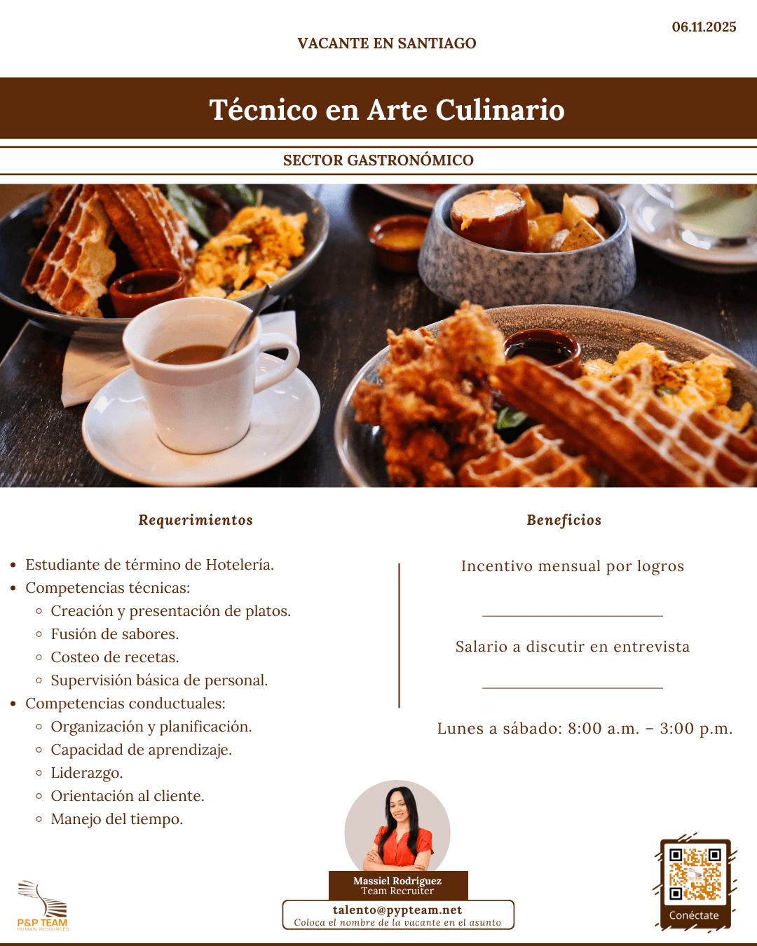 - Capacidad de aprendizaje rápido y adaptación a nuevas tendencias culinarias.