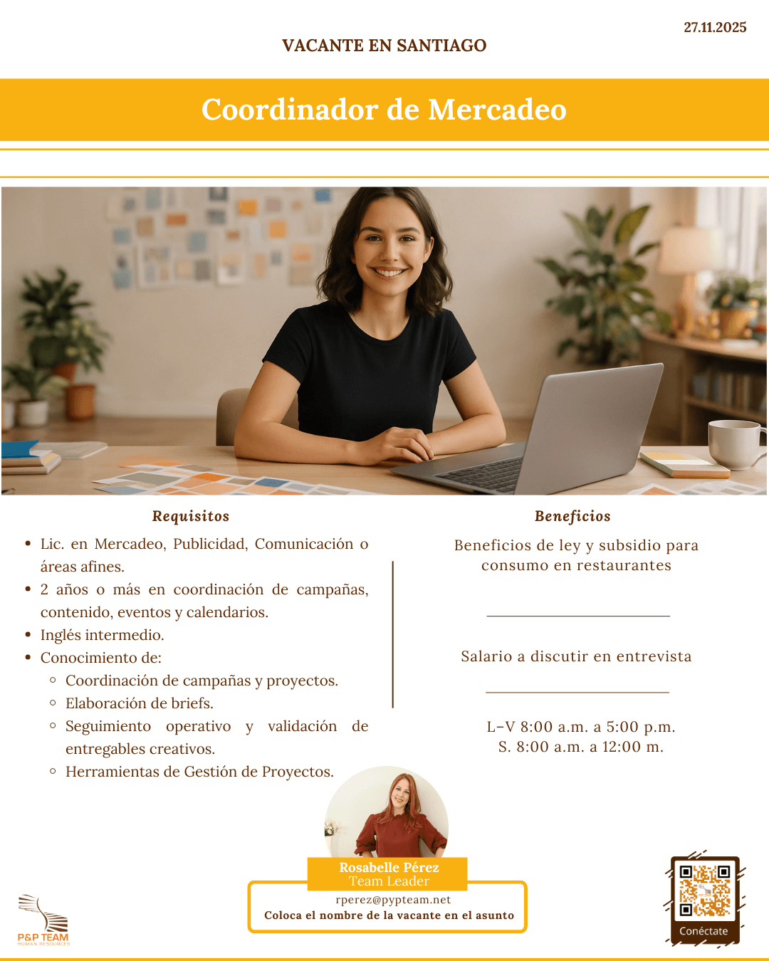 -Conocimientos en coordinación de campañas, contenido, piezas creativas y manejo de proveedores.