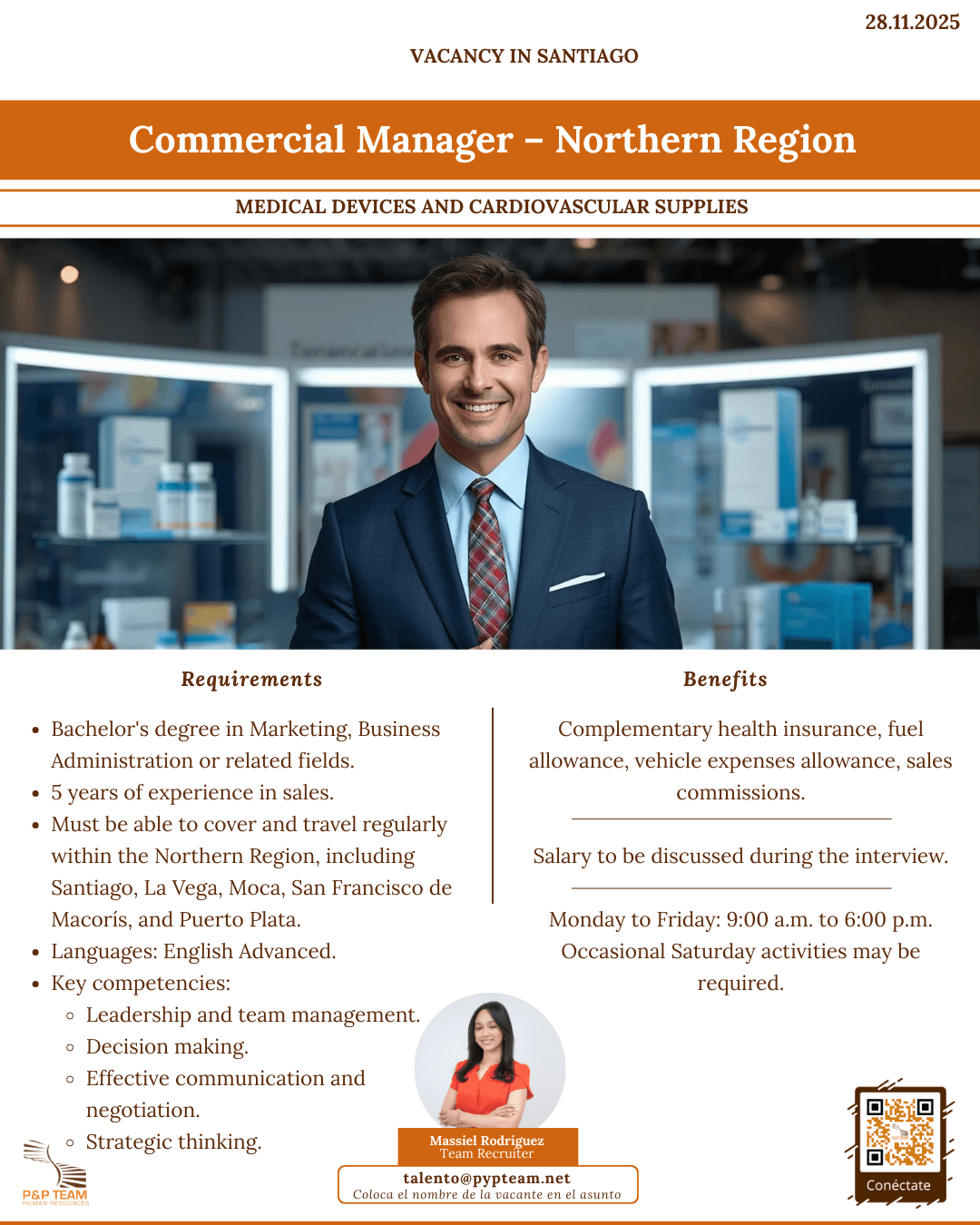 - Must be able to cover and travel regularly within the Northern Region, including Santiago, La Vega, Moca, San Francisco de Macorís, and Puerto Plata.