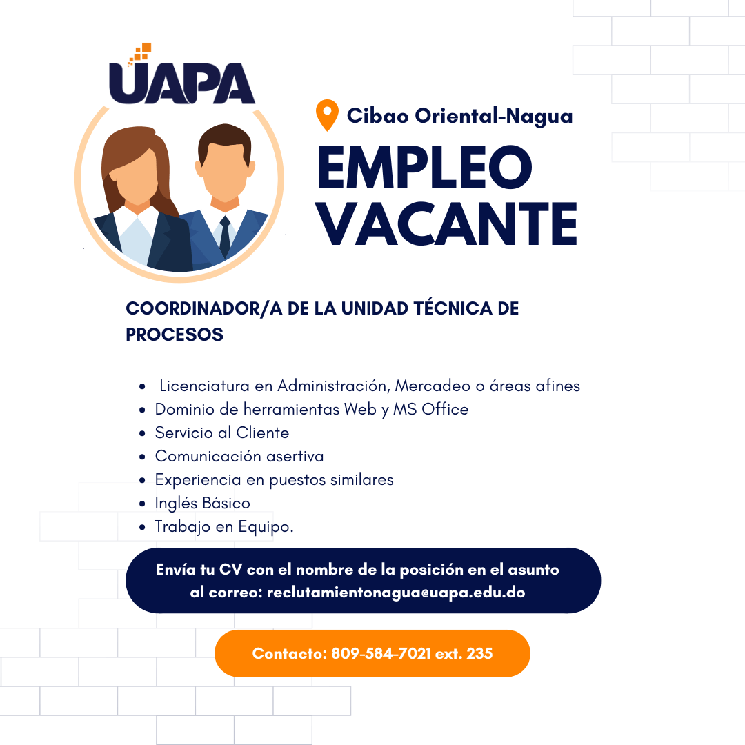 Coordinador/a de la Unidad Técnica de Procesos Vacante Fresca